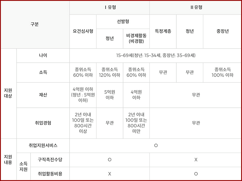 1유형에 해당되지 않는 특정계층, 청년, 중장년이 2유형 대상입니다.