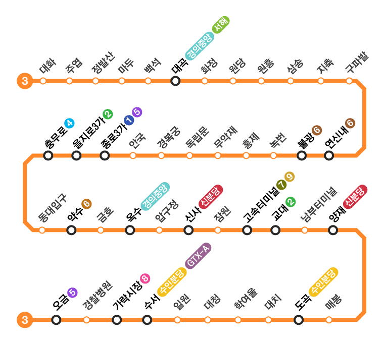 경기도 고양시 일산서구 대화역부터 서울특별시 송파구 오금역까지 연결된 수도권 전철 노선으로, 서울 지하철 3호선과 일산선이 하나로 이어진 형태입니다. 노선 색은 주황색이며, 이는 평화를 상징하죠. 이 노선은 수도권 전철 경의·중앙선과 함께 고양시와 서울을 연결하는 몇 안 되는 지하철 노선 중 하나입니다.